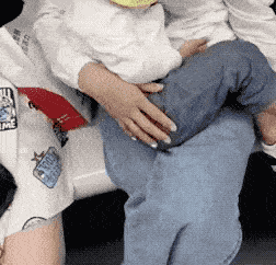 孩子在地鐵上依偎在年輕媽媽的懷中睡著了。年輕的媽媽為了不讓孩子的腳踢到身旁的乘客,用手捂在了他的小鞋上。