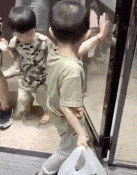 5歲的男孩,手里還提著笨重的購物袋,但是當他看到身后的阿姨和小妹妹不方便推開門進來的時候,他急忙轉身,用小小的身軀擋住了即將要合上的玻璃門,給阿姨和小妹妹讓路。