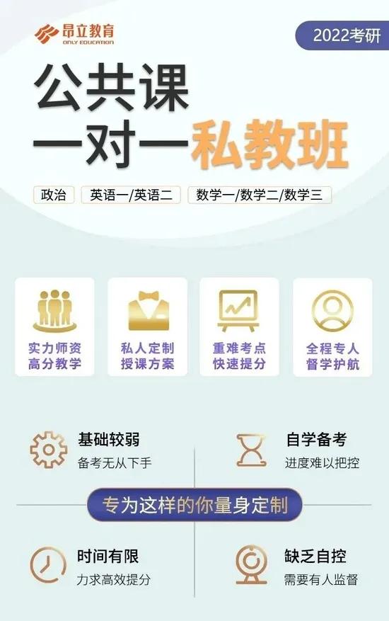 除此之外,昂立考研還針對在職考研、基礎薄弱等時間緊張的群體推出公共課1對1私教班和專業課1對1私教班。
