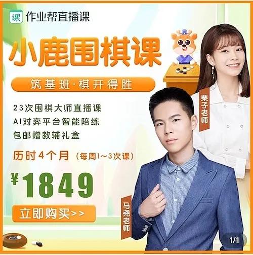 近日,作業幫上線小鹿圍棋課。據介紹,小鹿圍棋課適用于小學1-6年級學員,包含23節圍棋大師直播課和AI對弈平臺,提供智能陪練。