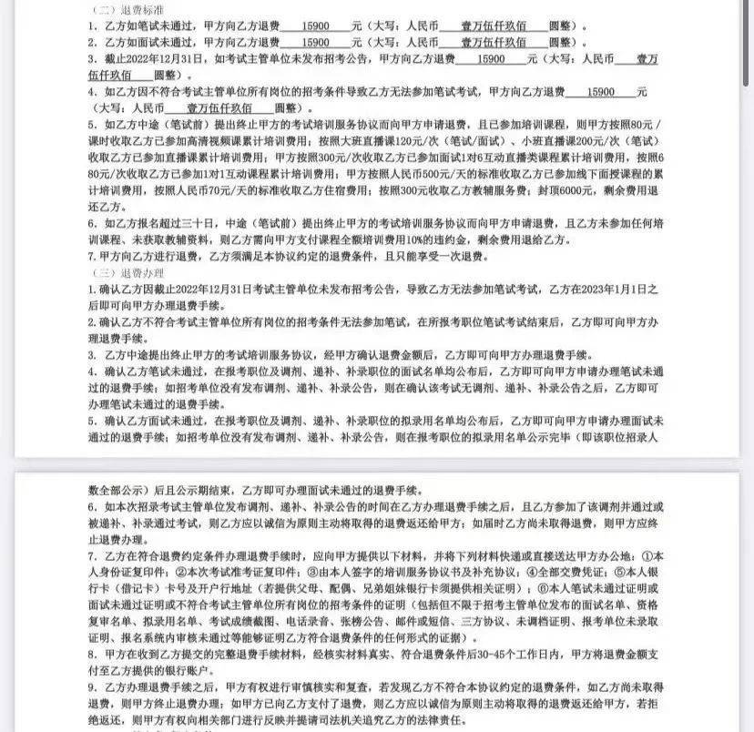 去年年底,她在中公教育報名了2022年度教師招聘考試的“筆試+面試協議班”,一共繳費15900元。