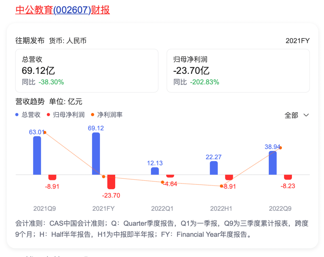 據2022年Q3季度財報,截至Q3季末,中公教育賬上流動資產7.21億元