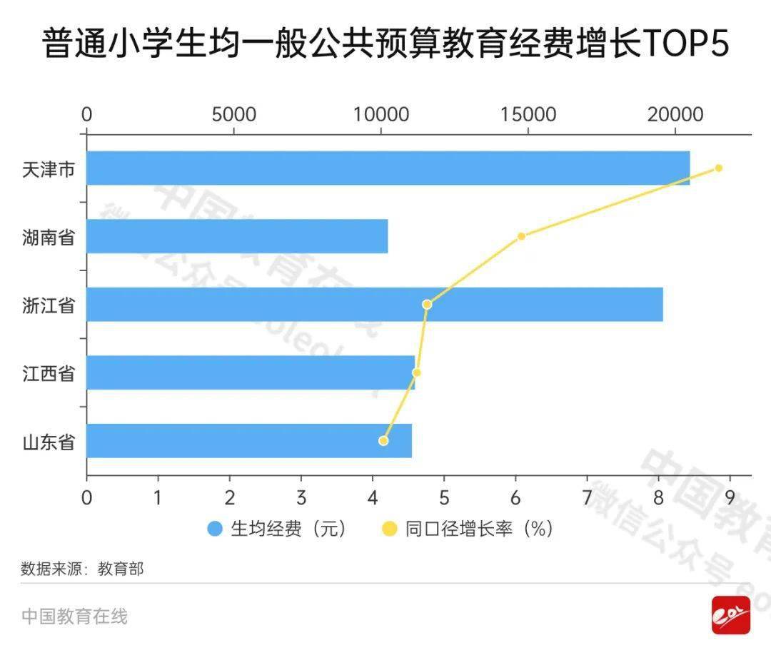 全國普通小學為12380.73元,同口徑比上年增長2.22%。各省區(qū)市中, 增長最快的是天津市(8.85%)。其次為湖南省(6.09%)、浙江省(4.77%)、江西省(4.63%)、山東省(4.16%)。