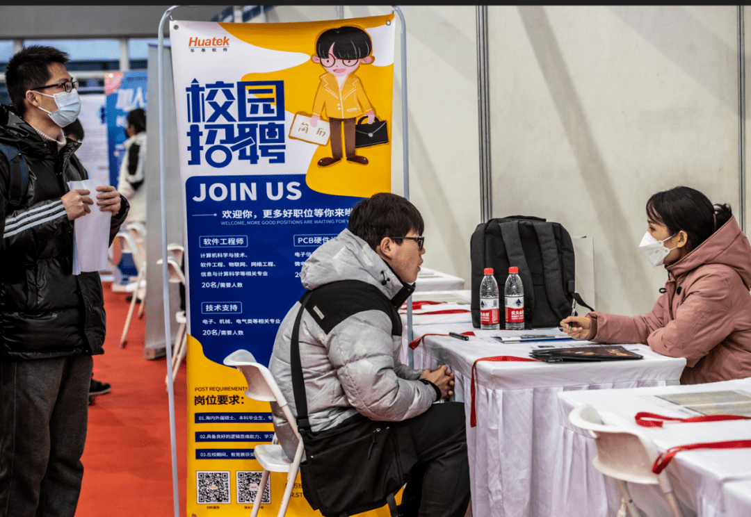 2月16日,學生在西安建筑科技大學2023屆畢業生春季就業洽談會上與招聘單位洽談。圖片來源:新華社,圖文無關