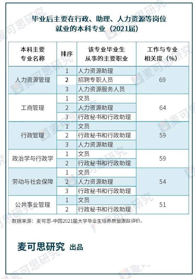 根據麥可思-中國2021屆大學畢業生培養質量跟蹤評價數據,公共事業管理、行政管理、工商管理、人力資源管理等專業有可能最先受到沖擊。因為這些專業本科生畢業后最主要從事的,就是行政、助理、文員等一類最易被AI替代的崗位。