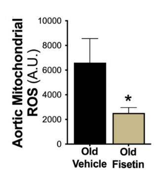 圖:非瑟酮組老年小鼠的主動脈線粒體中活性氧水平降低2.6倍