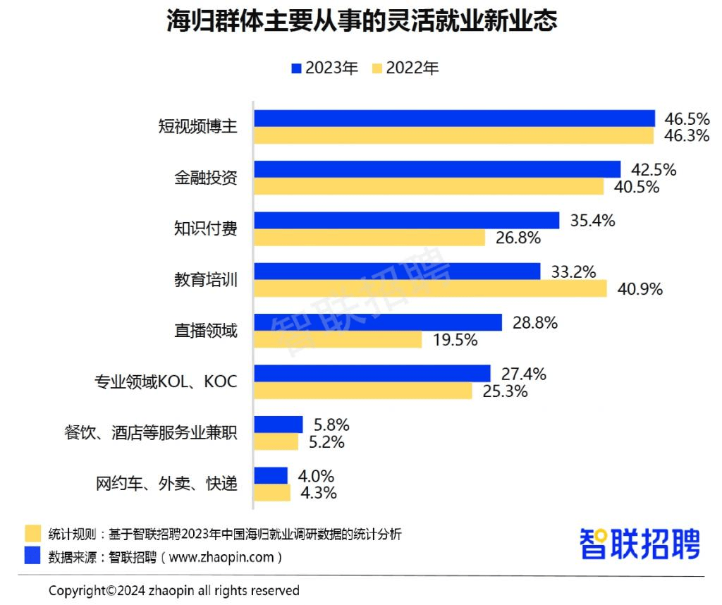 4.超7成海歸愿意靈活就業,短視頻博主是首選