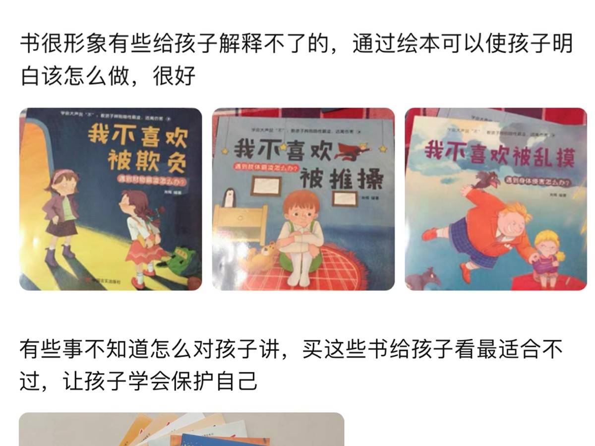 如果家長不知道怎么教孩子識別什么樣的行為屬于被欺負的情況,可以借助繪本幫忙。