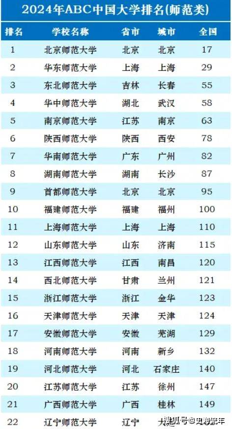 華南師范大學(xué)在《2024年軟科中國師范大學(xué)排行榜》上,排名全國第8位。在《2024年校友會中國師范大學(xué)排行榜》上,排名全國第7位。在《2024年ABC中國師范大學(xué)排行榜》上,也排名全國第7位。