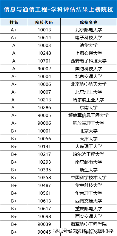 下表為信息與通信工程學(xué)科具體評(píng)級(jí)信息: