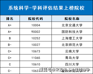 下表為系統(tǒng)科學(xué)學(xué)科具體評(píng)級(jí)信息: