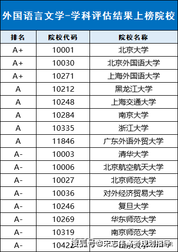 下表為外國語言文學(xué)學(xué)科具體評(píng)級(jí)信息:
