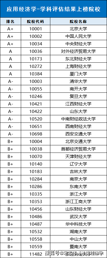 下表為應(yīng)用經(jīng)濟(jì)學(xué)學(xué)科具體評(píng)級(jí)信息: