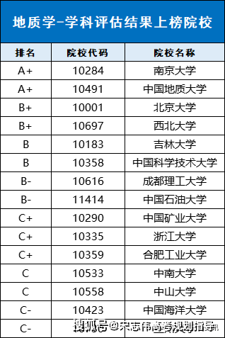 下表為地質(zhì)學(xué)學(xué)科具體評(píng)級(jí)信息: