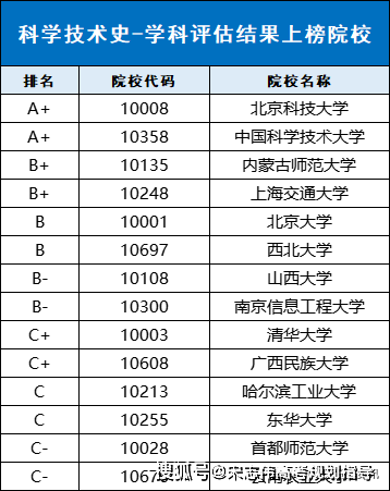 下表為科學(xué)技術(shù)史學(xué)科具體評(píng)級(jí)信息: