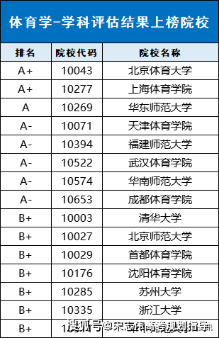 下表為體育學(xué)學(xué)科具體評(píng)級(jí)信息: