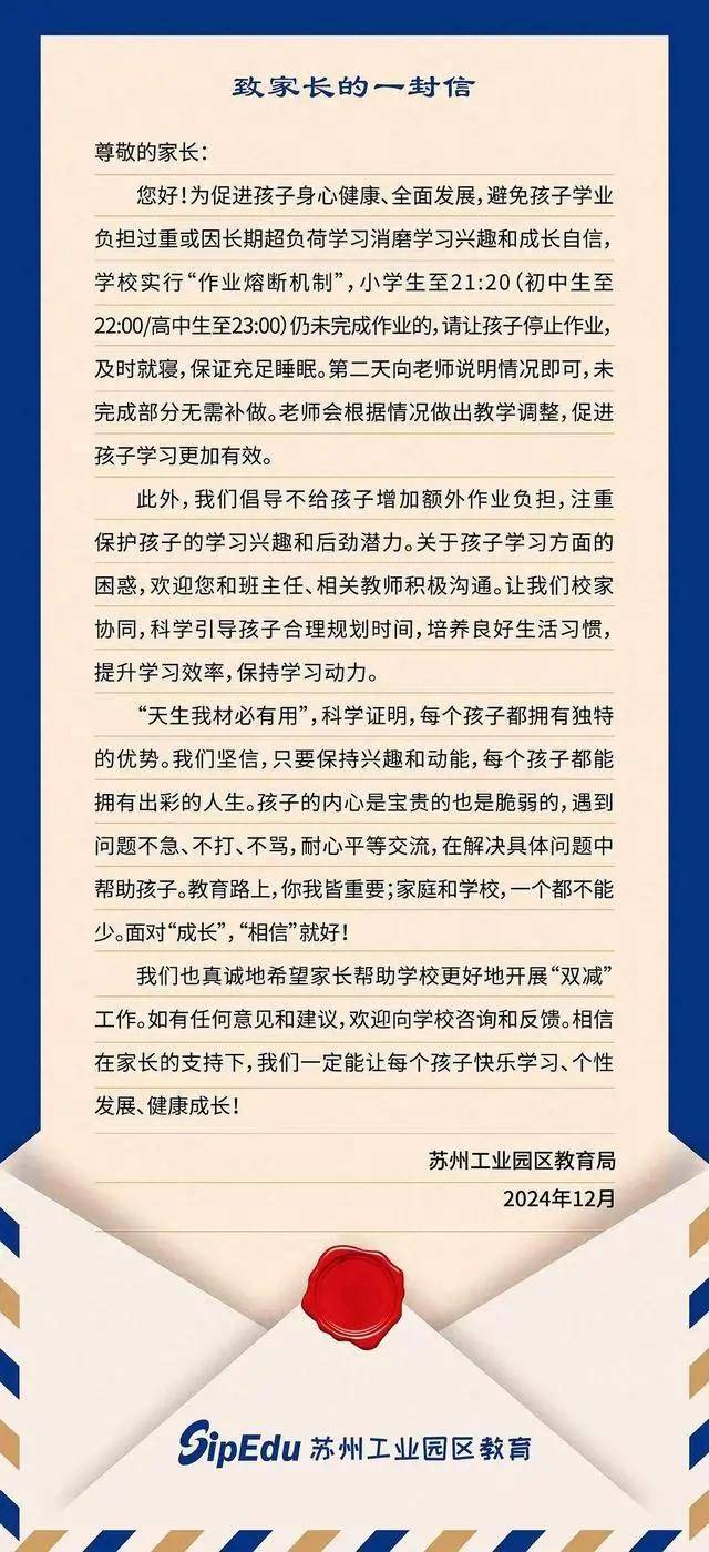 通過(guò)致信披露新規(guī),這一做法并不常見(jiàn)。蘇州工業(yè)園區(qū)教育局一名工作人員提到,發(fā)布《致園區(qū)家長(zhǎng)的一封信》,是希望家校攜手、協(xié)力合作。
