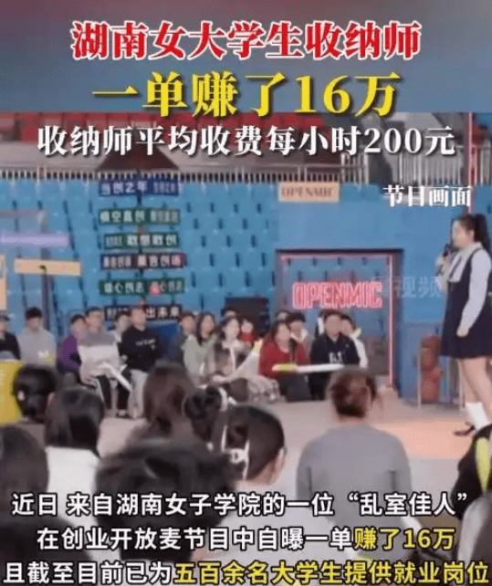 “收納師一單賺16萬?!”湖南女子學院一名女大學生在節目上自曝高收入,并為500多名大學生創造了就業機會,這讓這個原本小眾的職業引發廣泛關注。有人羨慕,有人質疑:花大價錢請人收拾東西,值不值?這背后可不僅僅是整理衣柜那么簡單。