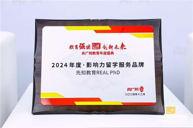 12 月 20 日,由央廣網主辦、中青世紀承辦的 2024“聲徹中國”教育年度盛典在北京廣播大廈酒店隆重舉行。盛典以“教育強國,創新未來”為主題,依托其強大的影響力使得相關領導、行業專家、著名學者、教育領導人、優秀教師以及媒體人士齊聚一堂,通過主題演講、專題報告、高端訪談、觀點分享等方式,對行業熱點議題進行討論,預判新趨勢、分享新見解。先知教育作為博士留學申請服務領域的佼佼者,受邀出席本次盛典,并斬獲 “2024 年度?影響力留學服務品牌” 獎項。這不僅標志著行業對其品牌的高度認可,也彰顯著其在推動行業發展及人才建設中作出的重要貢獻。