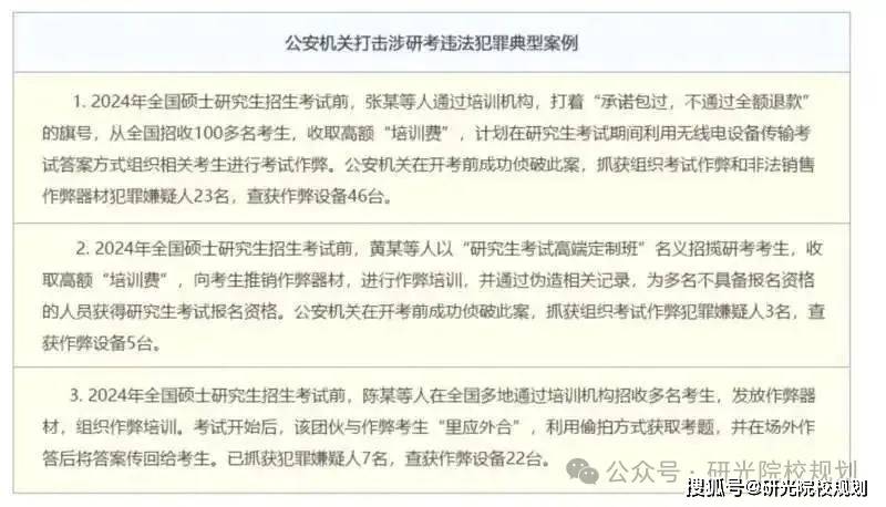 2025年全國碩士研究生招生考試在即。記者從教育部官網獲悉,為積極營造清朗健康的全國研考網絡環境,根據國家教育統一考試工作部際聯席會議部署,教育部會同中央網信辦、公安部聯合開展查處涉研考違法有害信息專項工作。