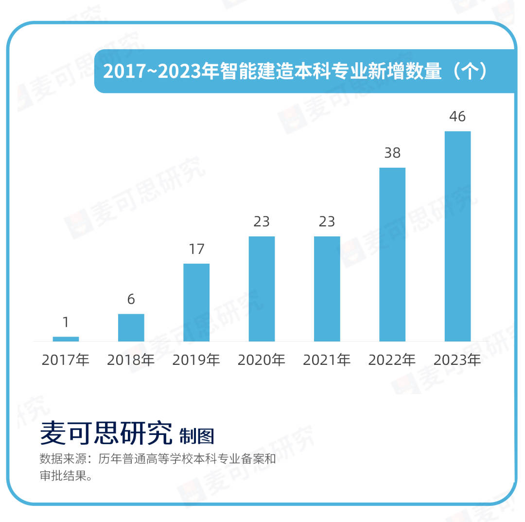 根據教育部統計數據,智能建造專業自2017年由教育部正式批準新設以來,增設數量連年遞增,截至2023年已開設154個(包括二學位)。