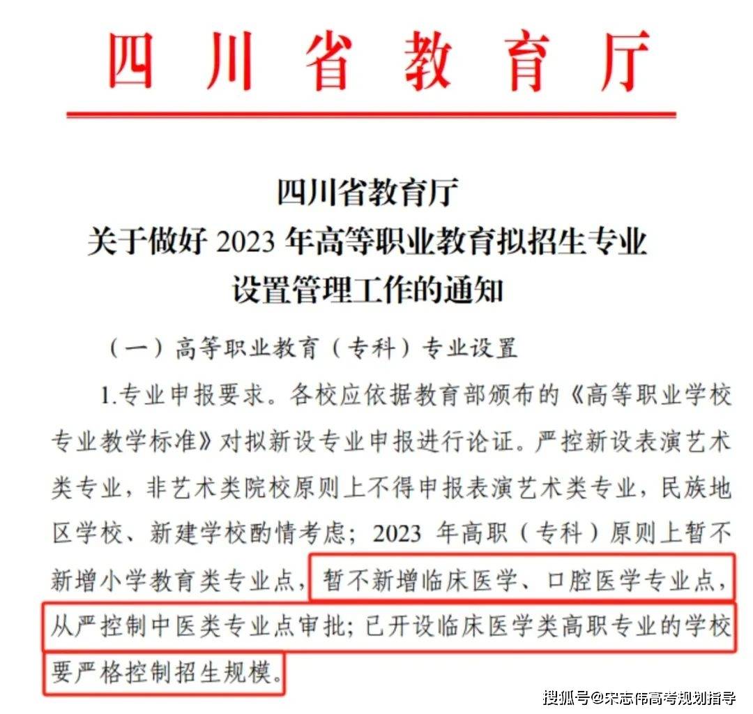 不僅江蘇省有此類通知,四川、河北、山西等地在其教育廳印發的《關于做好2025年職業教育擬招生專業設置管理工作的通知》中也提到:暫不新增臨床醫學、口腔醫學專業點,從嚴控制中醫類專業點審批;已開設臨床醫學類高職專業的學校要嚴格控制招生規模。