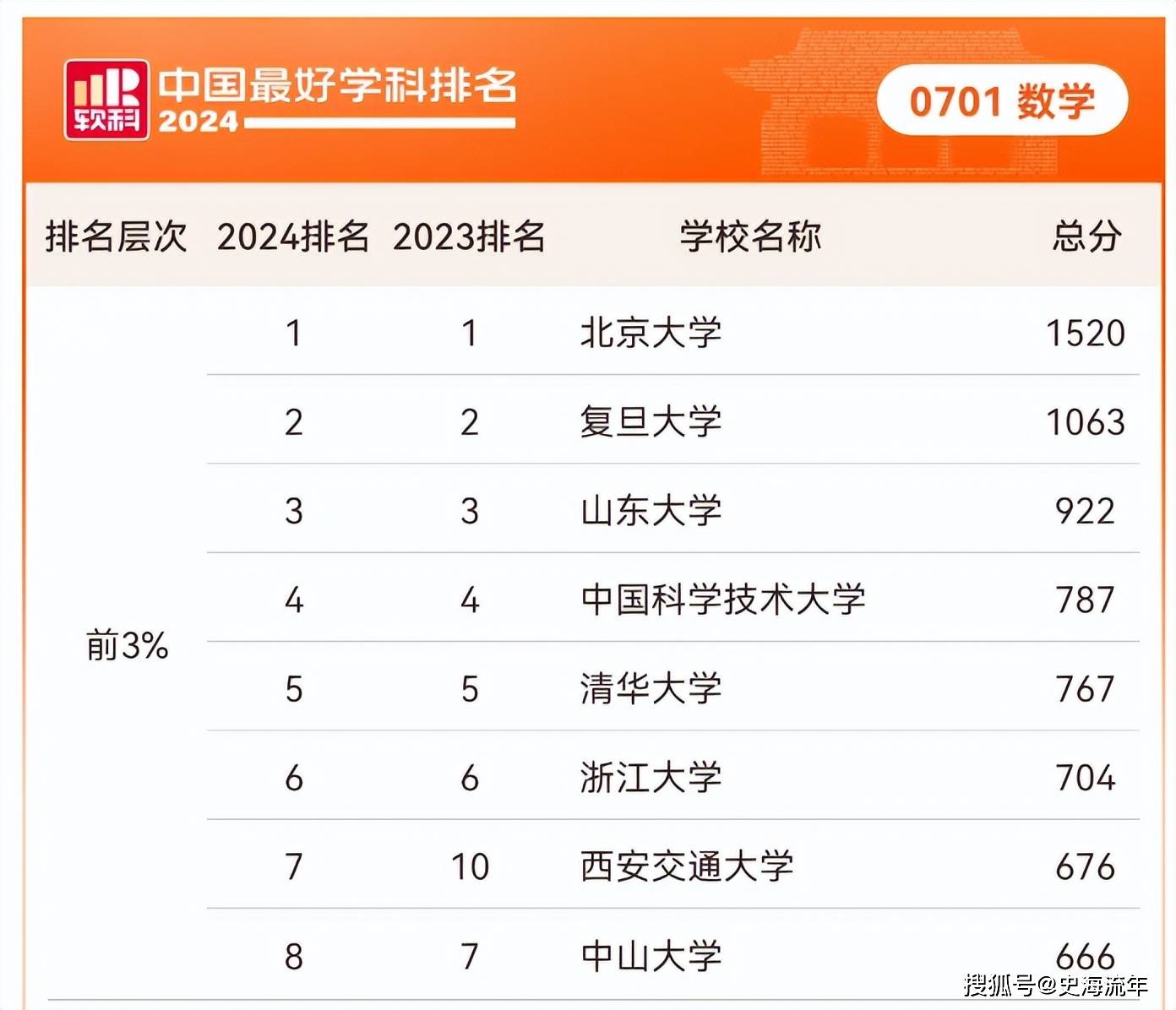 從軟科中國大學最好的學科數(shù)學專業(yè)排名來看,排名全國前3%的專業(yè)分別是北京大學、復旦大學、山東大學、中國科學技術大學、清華大學、浙江大學、西安交通大學、中山大學。