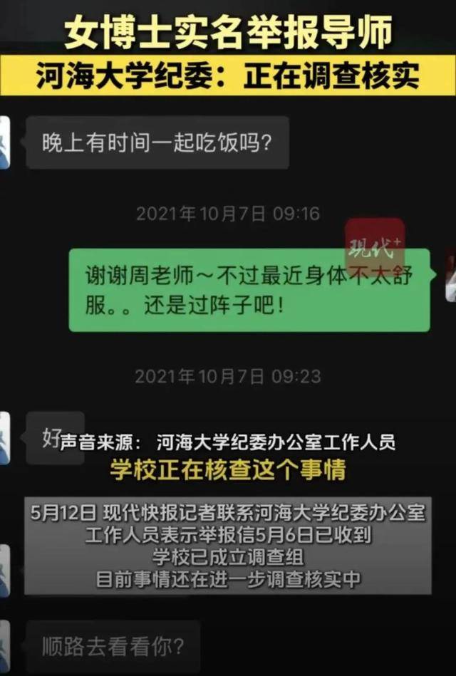 摘要: 原標題:女博士實名舉報導師,河海大學回應 近日,在河海大學讀博的李某某實名舉報其博士生導師周某某與自己配偶存在利益往來,以及對她進行言語性