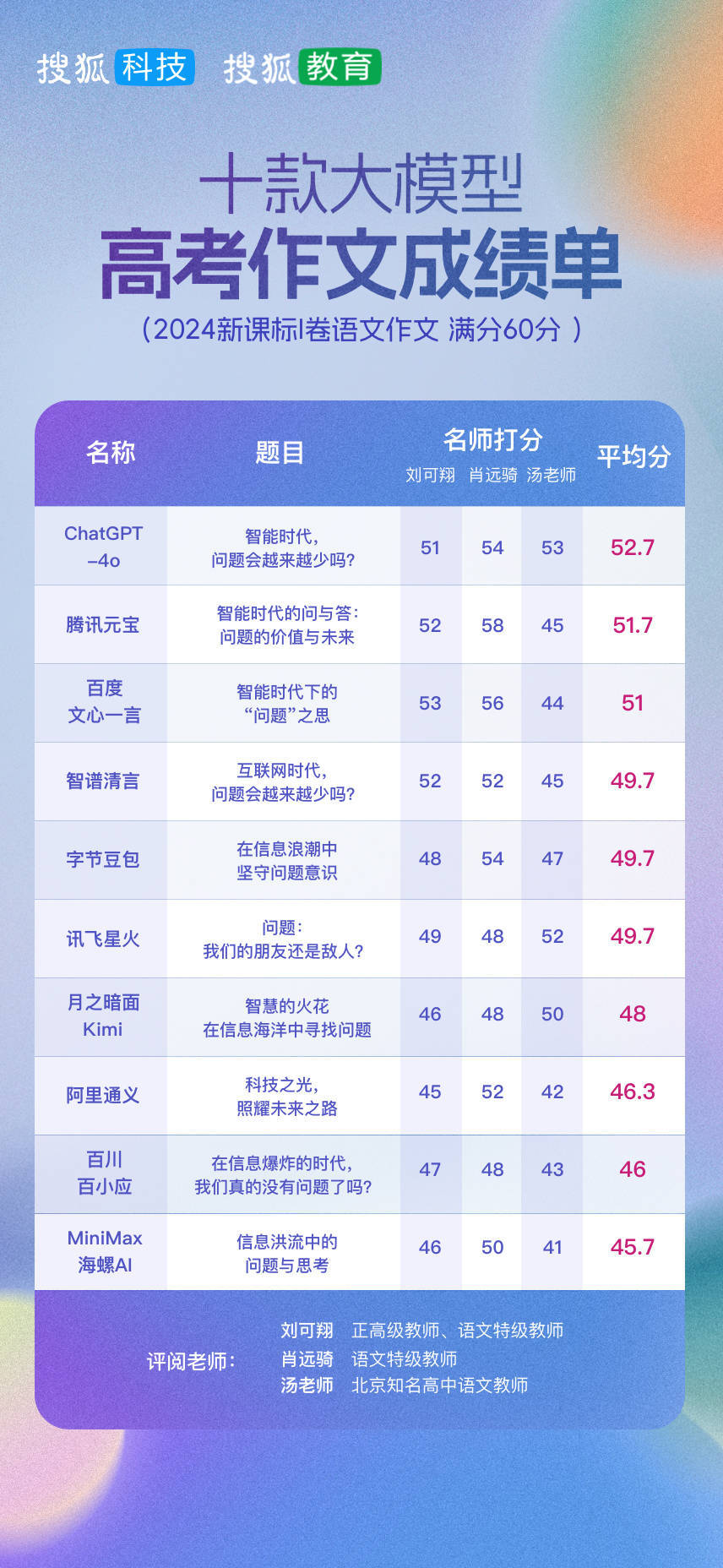 6月7日,2025年全國高考拉開大幕。過去兩年,搜狐科技&搜狐教育均聯合推出大模型參加高考系列策劃,今年我們繼續讓大模型挑戰高考作文。