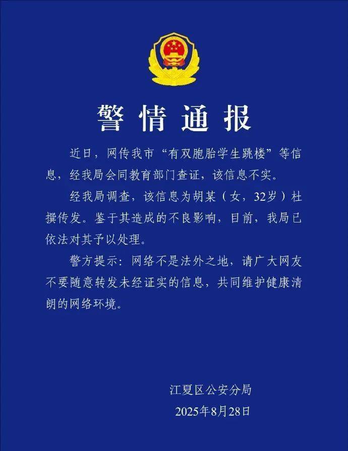 原標(biāo)題:武漢通報(bào):“雙胞胎學(xué)生跳樓”消息不實(shí)