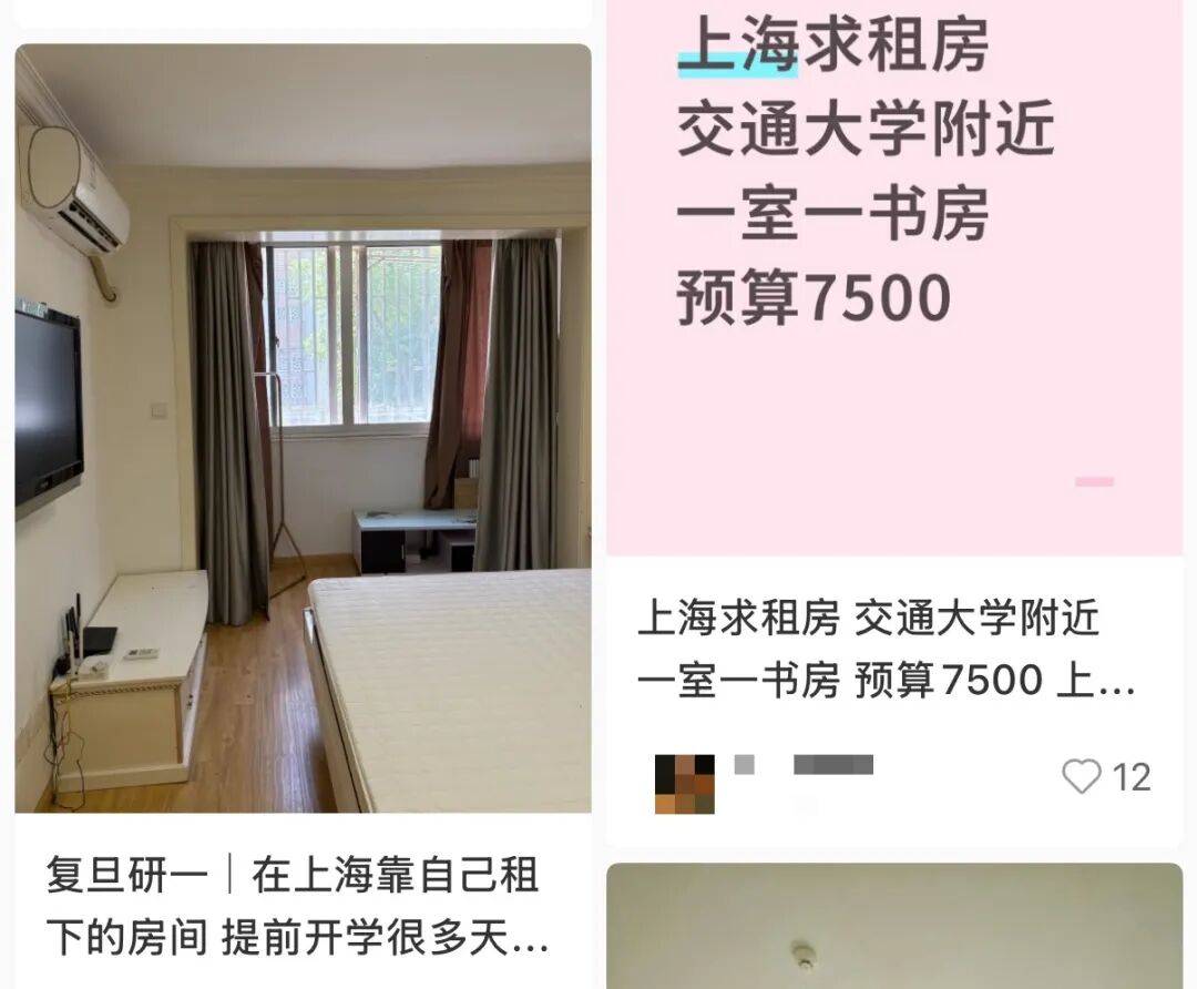 在社媒平臺上,以上海為檢索關(guān)鍵詞,可檢索出不少關(guān)于大學(xué)租房的供需帖