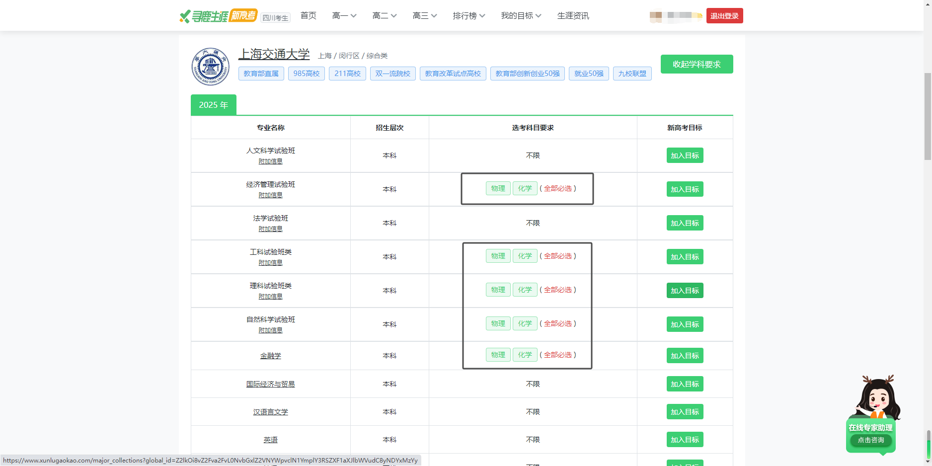 在新高考模式下,高一的學科選擇至關重要。尋鹿新高考的智能專業定位與學科數據查詢服務應運而生,完美適配“3+1+2 模式”和“3+3 模式”。它以考生的個性化需求為基礎,從大學專業出發,倒推適合的高中學科。無論是智能專業定位、根據大學選學科,還是根據學科選專業、設定新高考目標,都能讓考生在高一未選科階段,依據本省考試院的學科要求數據,精準確定適合自己的學科組合。