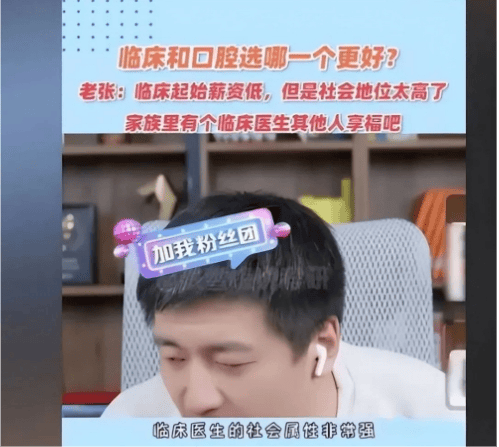 首先張雪峰表示臨床醫學雖然是醫學專業中最高的,但是平時工作辛苦,而且薪資不高;口腔醫學是當下比較賺錢的醫學專業,但是社會地位卻不是很高。