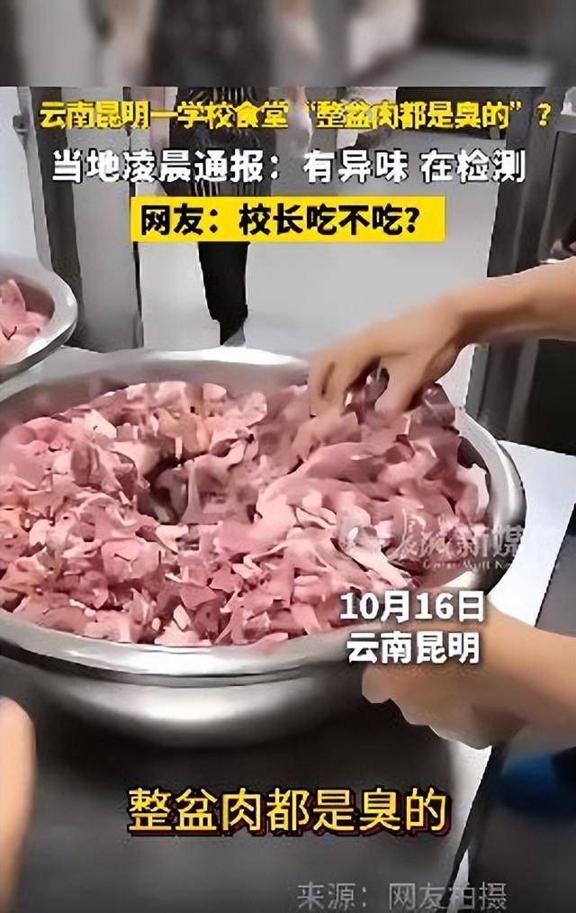摘要: 原標題:臭肉進了中學食堂,校長陪餐制為何淪為虛設? 整盆肉都是臭的! 校園食堂再出食品安全事件。10月16日,云南昆明有家長發視頻稱,官渡區云子