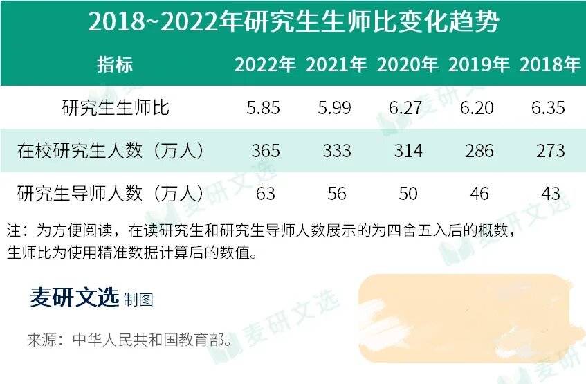 根據教育部統計數據,2018——2021年的全國研究生導師規模保持逐年增長態勢,研究生生師比有下降趨勢,但在2020年因研究生大幅擴招而出現反彈(6.27:1)。相關研究顯示,世界高水平大學研究生生師比一般在2:1——4:1之間。伴隨著研究生規模的不斷擴大,學校師資以及教學科研設施能否充分保障研究生的學習、科研等活動,是值得相關高校關注的問題。