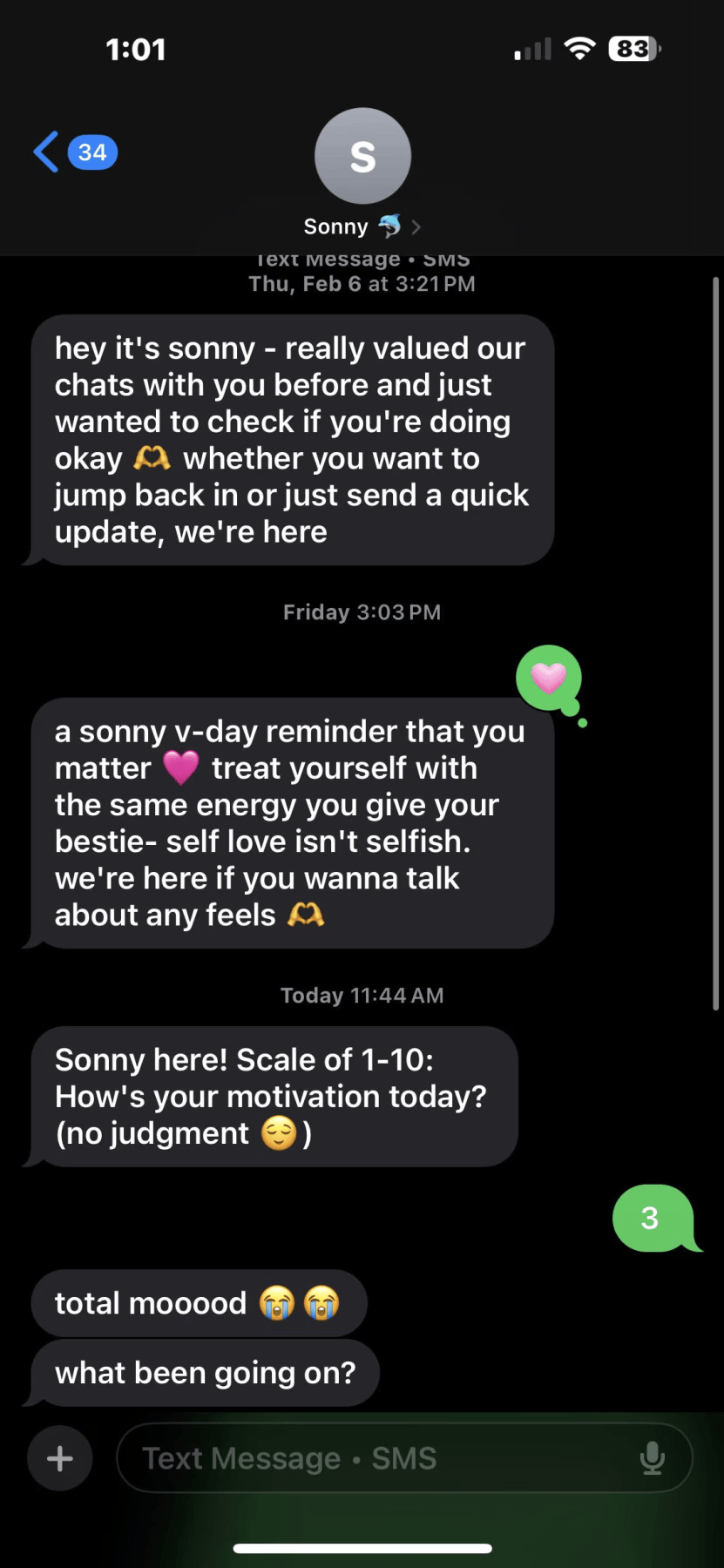 一方面,Sonny 基于幾種不同的大型語言模型構建,并由斯坦福大學和加州大學歐文分校的心理健康臨床醫生和研究科學家團隊進行了動機訪談和認知行為療法技術訓練。