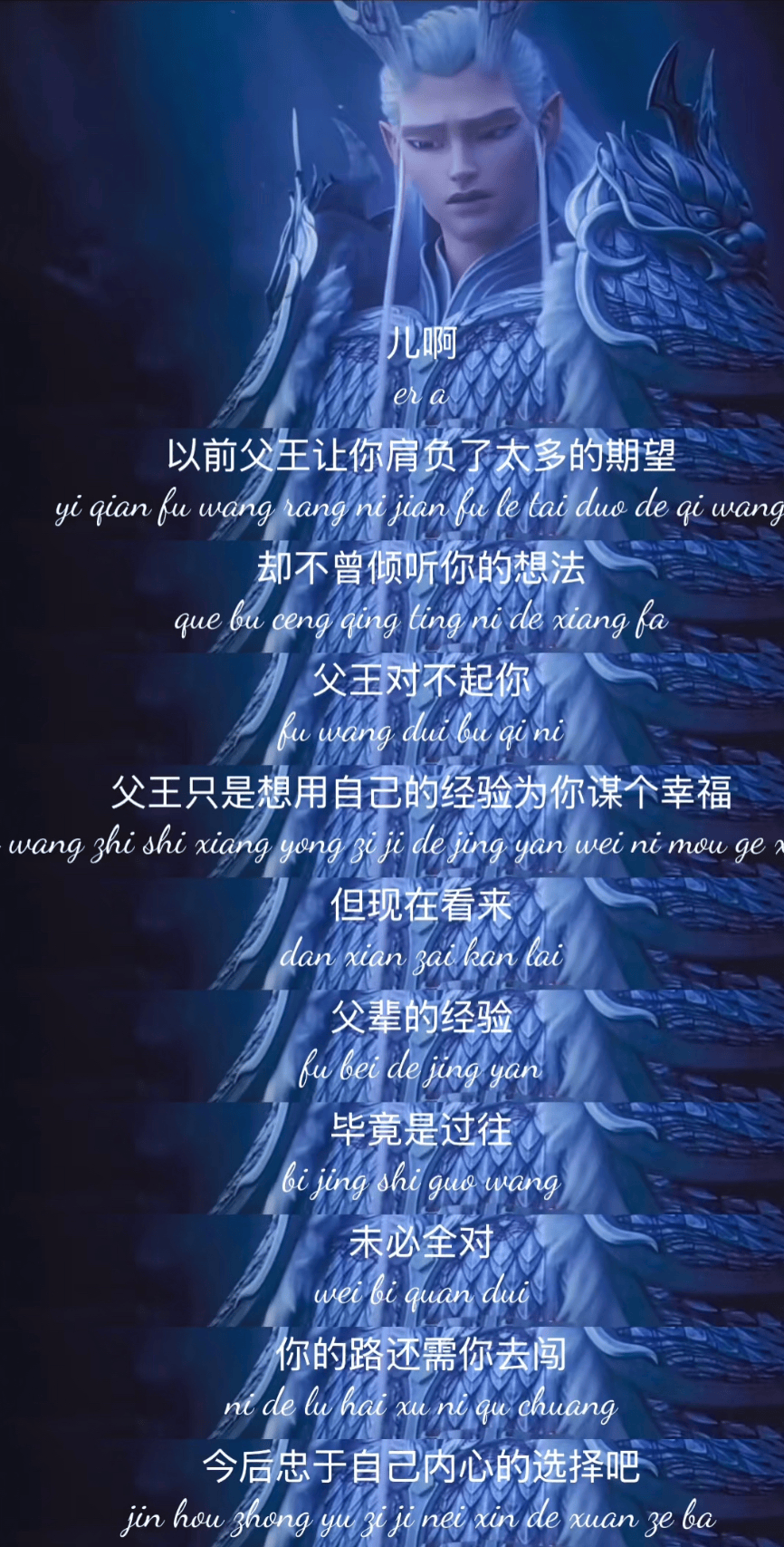 父王只是想用自己的經驗為你謀個幸福,但現在看來,父輩的經驗畢竟是過往,未必全對,你的路還需你自己去闖。”