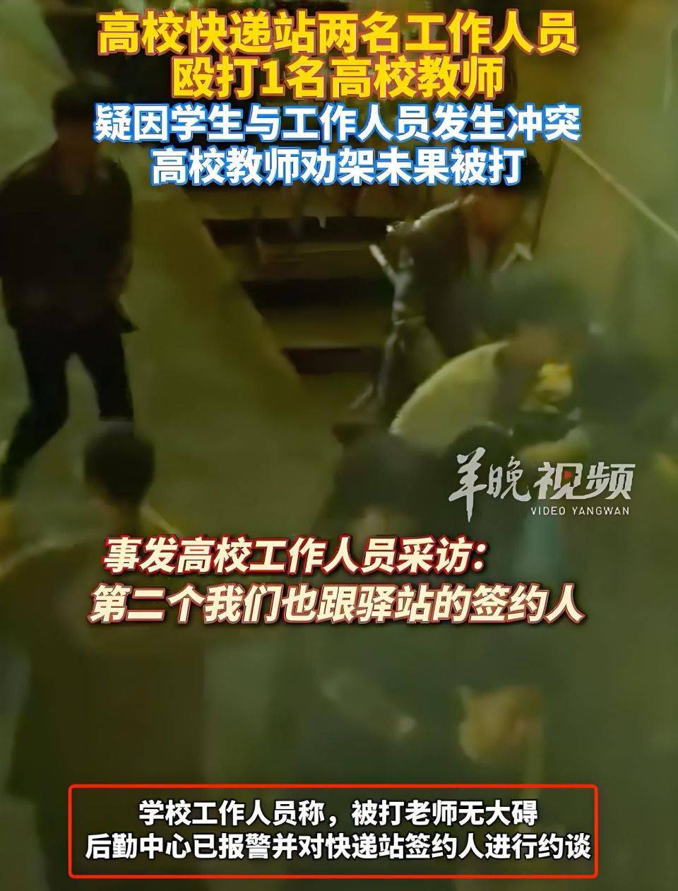 原標題: 勸架老師反被打!1名教師在高校快遞站被2名工作人員打!
