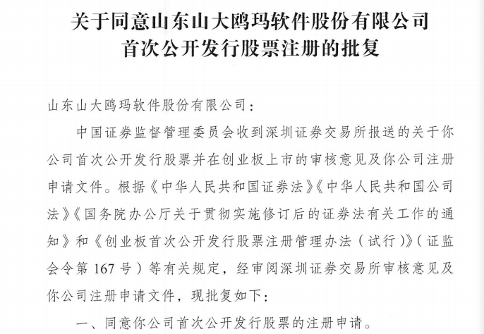 芥末堆文 11月17日,山東山大鷗瑪軟件股份有限公司發布上市公告,宣布正式登陸深交所創業板,股票簡稱“鷗瑪軟件”,股票代碼 301185。
