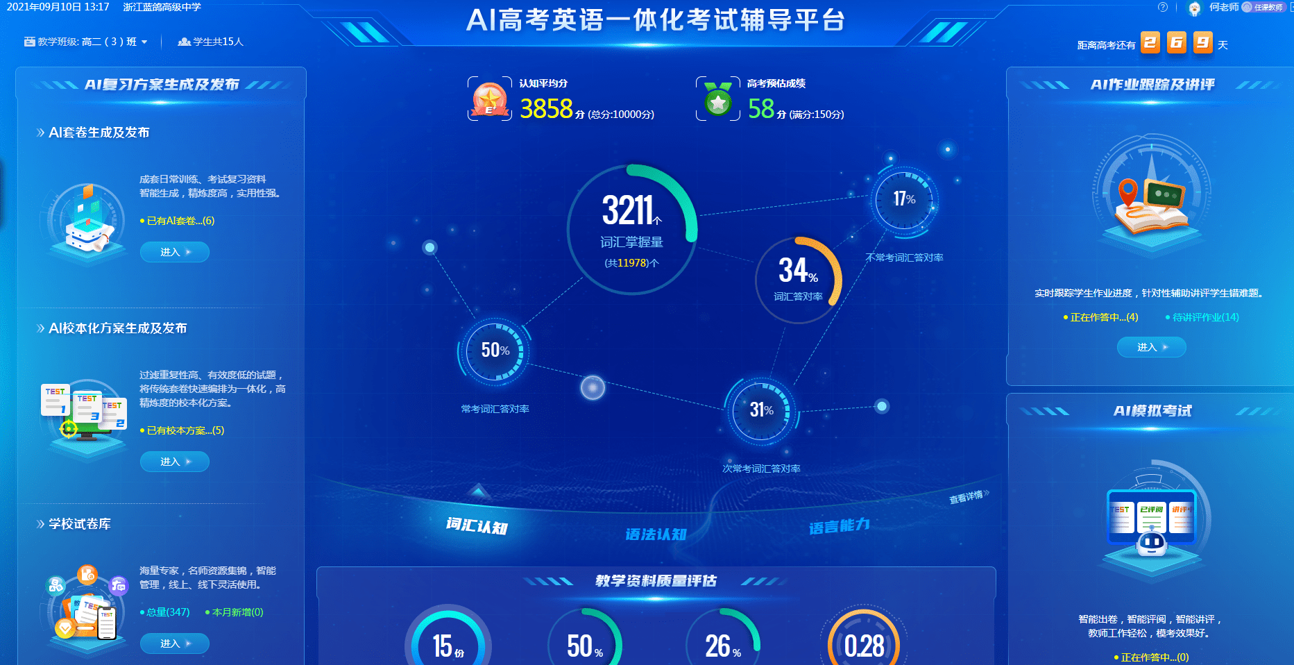 目前該校正積極貫徹落實“雙減政策”,尋找能夠輔助老師“精研細磨自編作業”的超級助手,期待藍鴿AI一體化英語考試輔導系統能早日進入學校,成為老師們的超級助手、學生們的超級助教,助力學子們高效提分,夢圓理想學府。