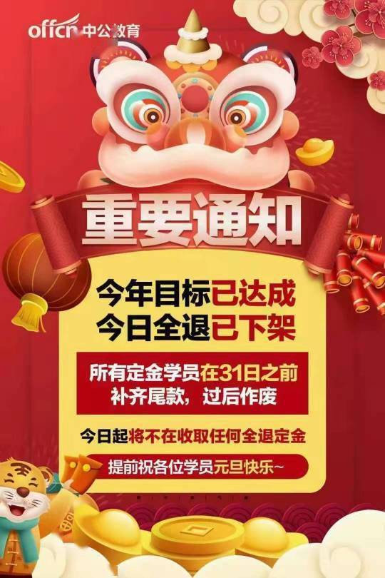 芥末堆文 芥末堆從中公銷售人員處獲悉,中公教育公考類“不過全退”協議班產品今日起已在各地下架,不再接收新的報名和定金繳納,已經付過定金的學員在元旦前可以補齊尾款,否則作廢。