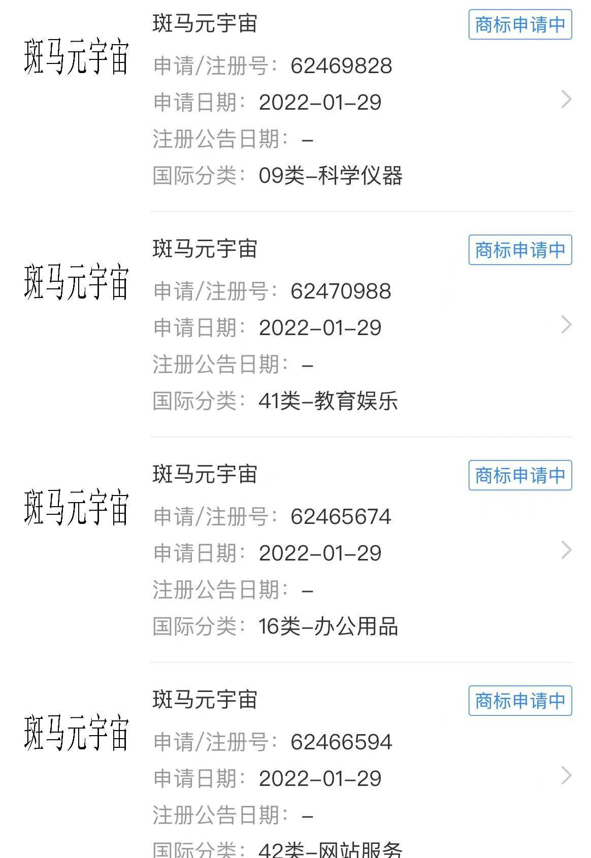 原標題:天眼查App顯示  猿輔導申請注冊“斑馬元宇宙”商標