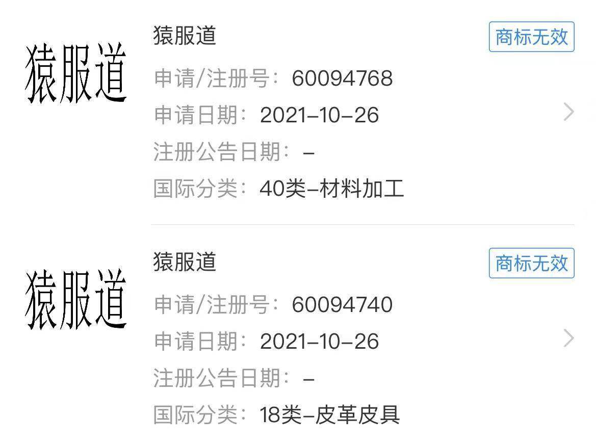此前,猿輔導還注冊過“猿服道”的商標,不過目前顯示“商標無效”,資料顯示猿輔導撤回了該商標的申請。從國家商標網查詢可以看到,目前,猿輔導投資的北京冰原服飾有限公司正在申請“猿服道”的商標。