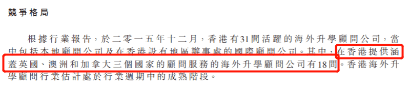 從經營范圍看,大地教育為有意到英國、澳洲、加拿大及美國升學的香港學生提供海外升學顧問服務。而2015年在香港31家活躍的海外升學顧問公司中,有18家提供英國、澳洲及加拿大三個國家的顧問服務。同年,香港地區赴英國、澳洲、加拿大留學的學生人數為51247人,同比僅增長4.6%。重合的業務方向,疊加緩慢增長的受眾,“僧多粥少”帶來了更加激烈的競爭。