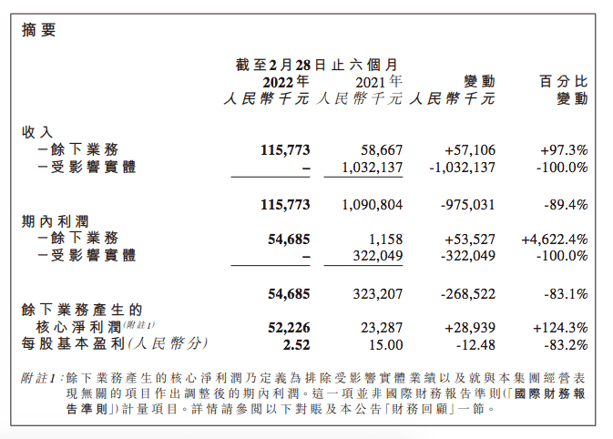 行政費用2311.8萬元,上年同期為3505.6萬元,同比減少34.1%。主要由于余下業務因實施條例而自2021年9月1日起不再為受影響實體提供任何管理服務所致。