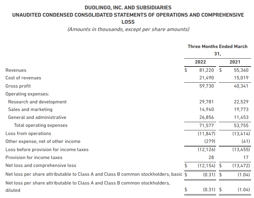 多鄰國語言學習App付費訂閱服務被稱為Duolingo Plus。第一季度,這部分業(yè)務的收入為5801萬美元,同比增長45%,占總營收的71.4%。截至第一季度末,Duolingo Plus的訂閱用戶數(shù)為290萬,同比增長60%。多鄰國的統(tǒng)計標準是“每個單獨的用戶賬號被視為一個付費訂閱用戶”。
