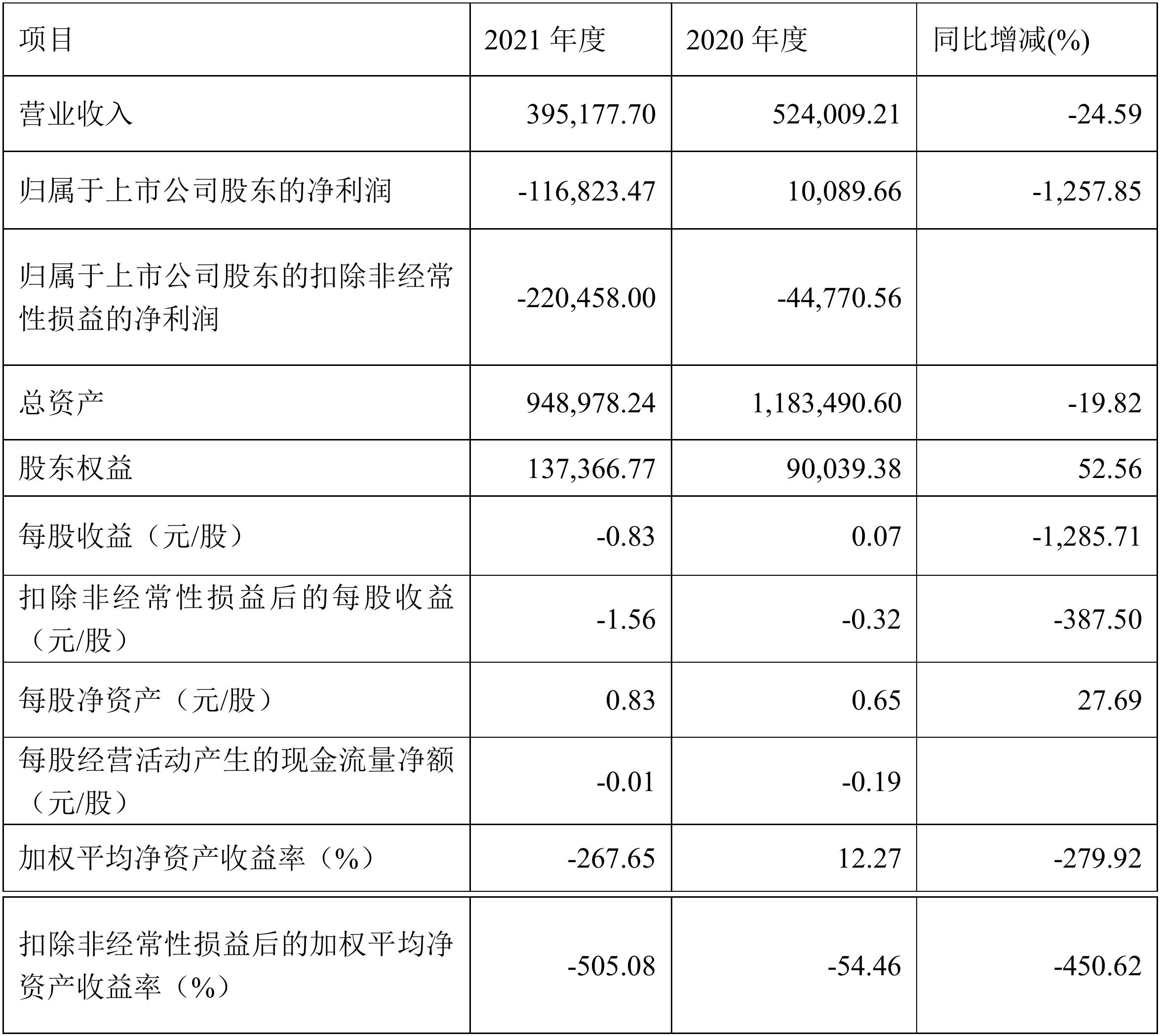 原標題:ST鵬博士2021年度財報: 營收39.52億元,凈虧損11.68億元