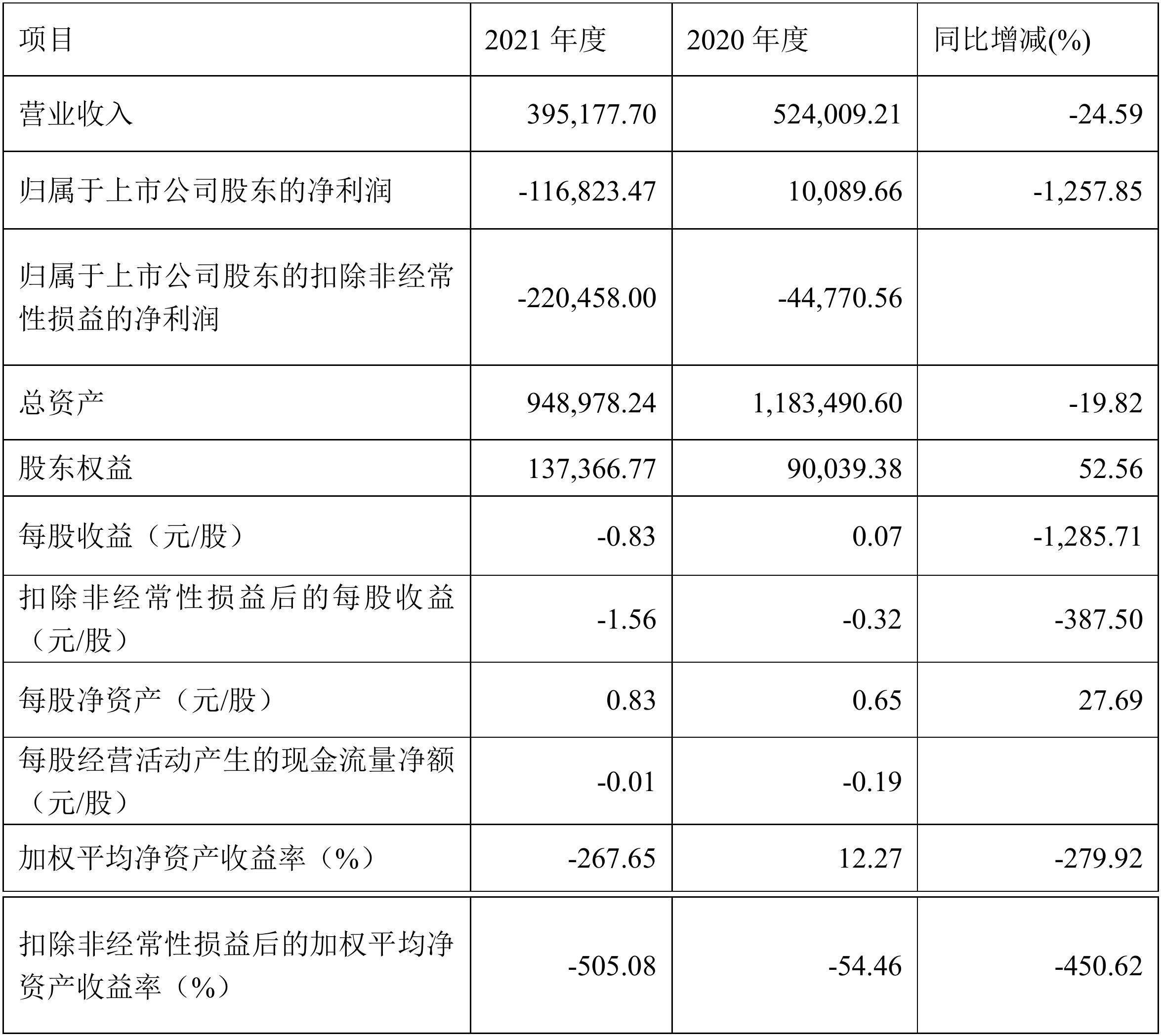 原標題:ST鵬博士曬2021年成績單: 營收39.52億元 凈虧損11.68億元
