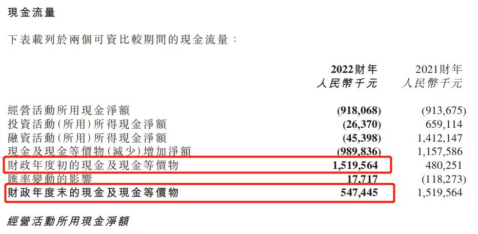 現金方面,報告期內,新東方在線的現金及現金等價物從2021財年末的15.2億元減少9.9億元至5.47億元,出現了較大的波動。2022財年經營活動所用現金凈流出9.18億元,除了業績虧損外,還與終止K12業務導致合約負債減少2.34億元等因素有關。