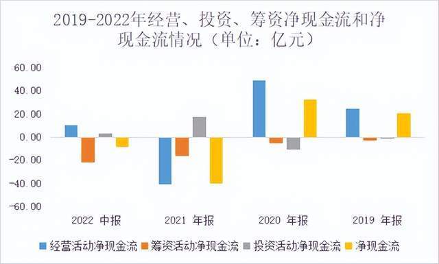 此外,一年內到期的非流動負債和短期借款也占了負債剩下的絕大部分,故每年需要償還的債務本息也是一個很大的數額。自2021年開始,由于經營活動大量凈流出,造血能力減弱導致現金流凈流出。2022年中報顯示,雖然經營活動有所好轉,但大量需要償還的負債還是導致了籌資活動現金流凈流出,總現金流自然也是凈流出。總體看來,中公教育現金存量并不是很充裕,抵抗風險的能力也不是很強。